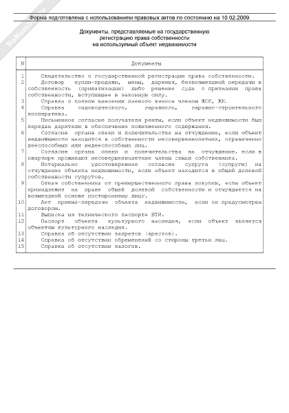 - 179Документы, представляемые на государственную регистрацию права собственности на используемый объект недвижимости
