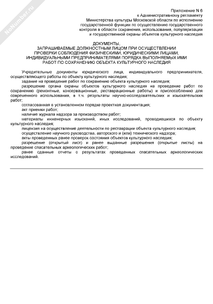 - 171Документы, запрашиваемые должностным лицом при осуществлении проверки соблюдения физическими, юридическими лицами, индивидуальными предпринимателями порядка выполняемых ими работ по сохранению объекта культурного наследия Московской области
