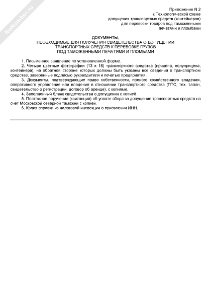- 174Документы, необходимые для получения свидетельства о допущении транспортных средств к перевозке грузов под таможенными печатями и пломбами