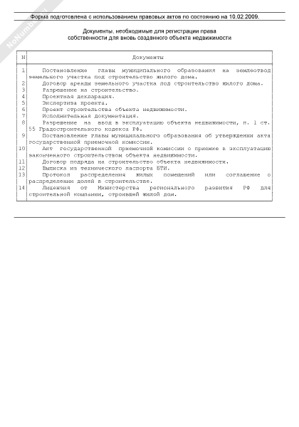 - 175Документы, необходимые для регистрации права собственности для вновь созданного объекта недвижимости