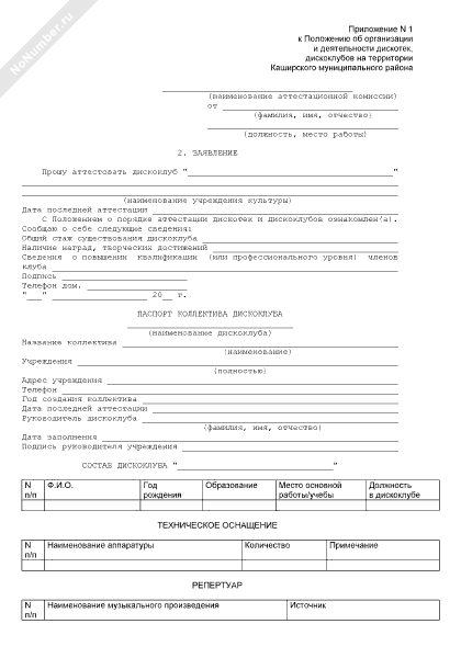 - 167Документы на аттестацию дискотеки, созданной на территории Каширского муниципального района Московской области