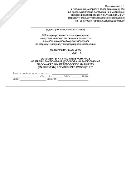 - 168Документы на участие в конкурсе на право заключения договора на выполнение пассажирских перевозок по маршруту (маршрутам) регулярного сообщения на территории города Железнодорожного Московской области