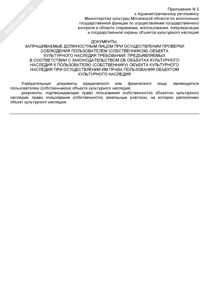 - 170Документы, запрашиваемые должностным лицом при осуществлении проверки соблюдения пользователем (собственником) объекта культурного наследия требований, предъявляемых в соответствии с законодательством об объектах культурного наследия к пользователю (собственнику) объекта культурного наследия при осуществлении им права пользования объектом культурного наследия Московской области