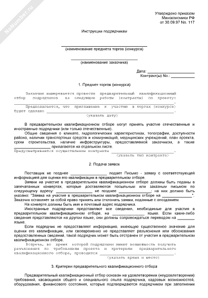 Инструкции подрядчикам при проведении торгов (конкурсов)