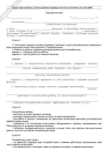 Фрагмент трудового договора работника, трудящегося в условиях ненормированного рабочего дня (рекомендуемый образец заполнения)