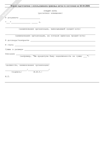 Кредит-нота (расчетное извещение)