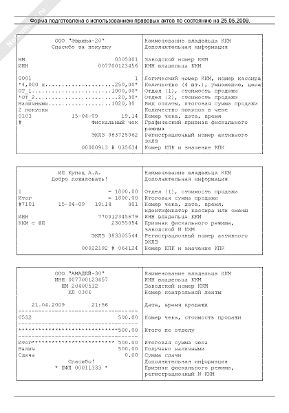 Образцы кассовых чеков с расшифровкой реквизитов