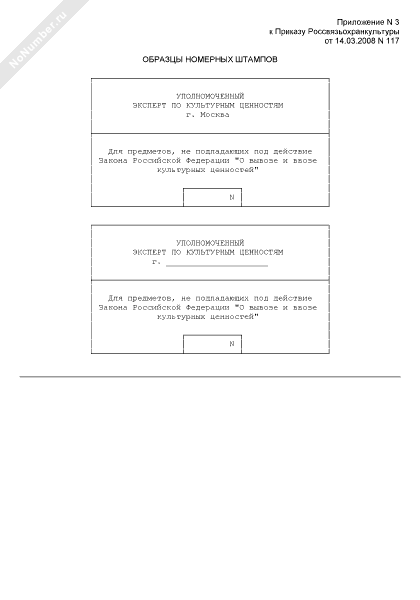 Образцы номерных штампов экспертов по культурным ценностям