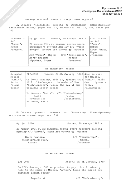 Образцы векселей, чеков и передаточных надписей (рус./англ.)