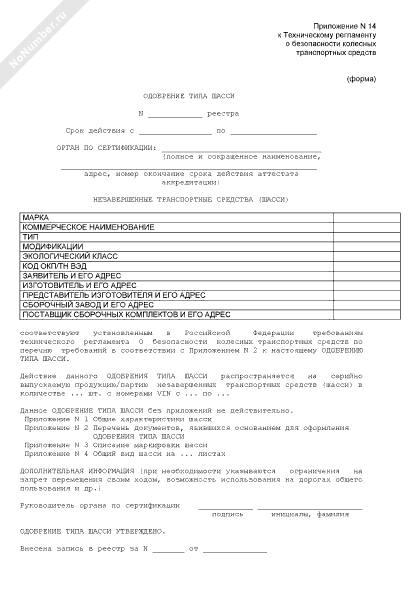 Одобрение типа транспортного средства категории N1-3 (рекомендуемый образец заполнения)