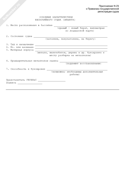 Основные характеристики бесхозяйственного судна (объекта) (вариант 1)