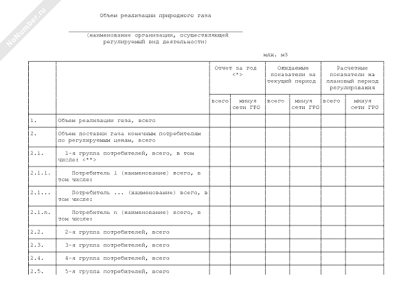 Объем реализации природного газа организацией
