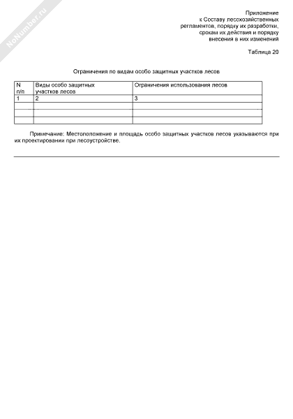 Виды разрешенного использования лесов (рекомендуемый образец заполнения)