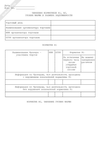 Значения нормативов R1, R2, уровня маржи и размера задолженности