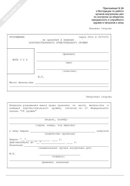Разрешение на хранение и ношение короткоствольного огнестрельного оружия (рекомендуемый образец заполнения)