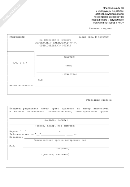 Разрешение на хранение и ношение охотничьего пневматического, огнестрельного оружия (рекомендуемый образец заполнения)