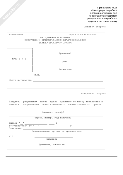 Разрешение на хранение и ношение спортивного огнестрельного гладкоствольного длинноствольного оружия (рекомендуемый образец заполнения)