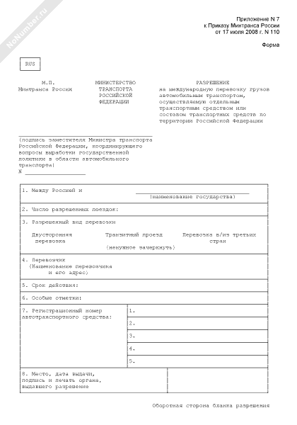 - Источник– Приказ Минтранса РФ от 17.07.2008 № 110