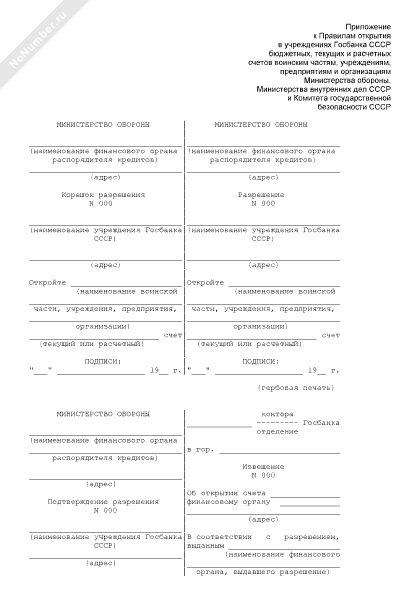 Разрешение на открытие в учреждениях Госбанка СССР счетов (бюджетных, текущих и расчетных) воинским частям, учреждениям, предприятиям и организациям министерства обороны, Министерства внутренних дел СССР и комитета государственной безопасности СССР