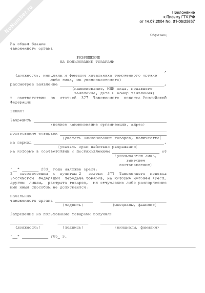 - Источник– Письмо ГТК РФ от 14.07.2004 № 01-06/25857