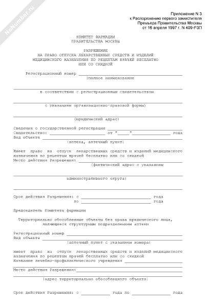 - Источник– Распоряжение Правительства Москвы от 16.04.1997 № 409-РЗП