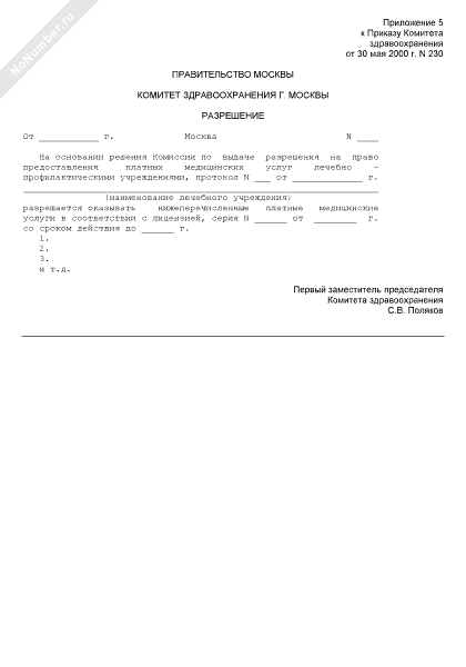Разрешение на право предоставления платных медицинских услуг лечебно-профилактическими учреждениями (рекомендуемый образец заполнения)