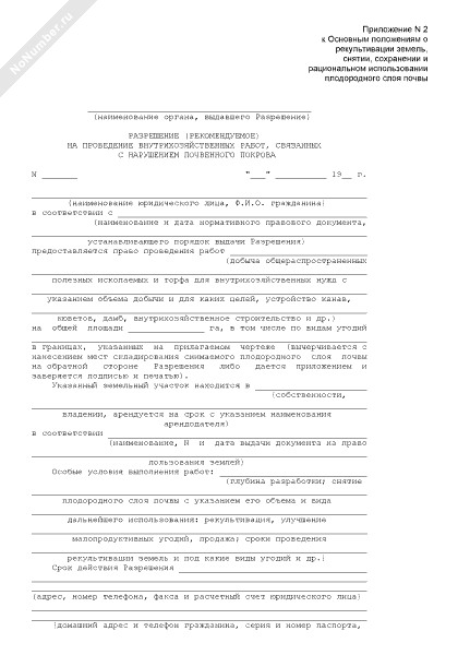 Разрешение на проведение внутрихозяйственных работ, связанных с нарушением почвенного покрова (рекомендуемое)