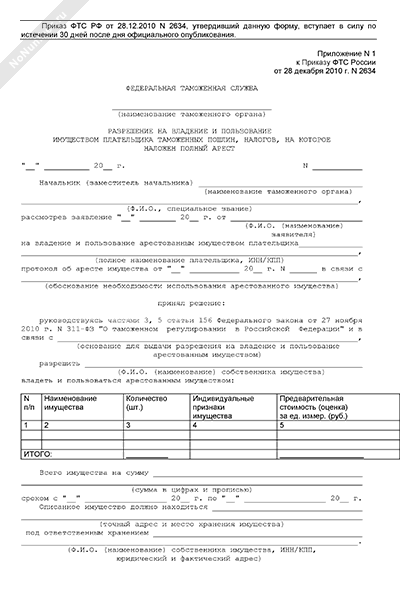 - Источник– Приказ ФТС РФ от 28.12.2010 № 2634