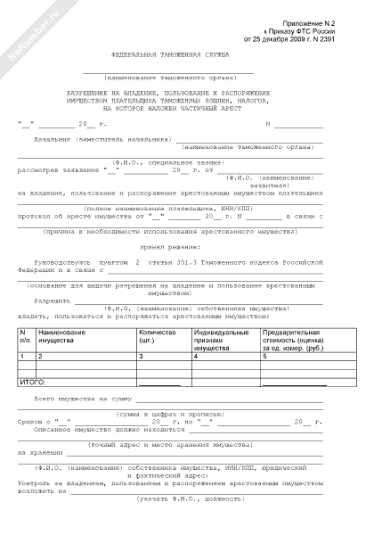 - Источник– Приказ ФТС РФ от 25.12.2009 № 2391