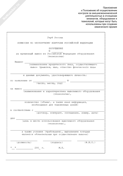 Разрешение на временный вывоз из Российской Федерации оборудования (технологии), которое может быть использовано при создании химического оружия