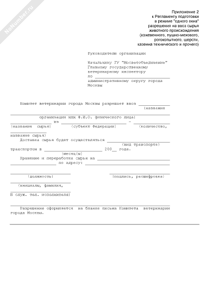 Разрешение на ввоз сырья животного происхождения (кожевенного, пушно-мехового, рогокопытного, шерсти, казеина технического и прочего) из города Москвы
