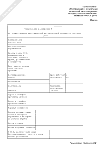 Специальное разрешение на осуществление международной автомобильной перевозки опасного груза (рекомендуемый образец заполнения)