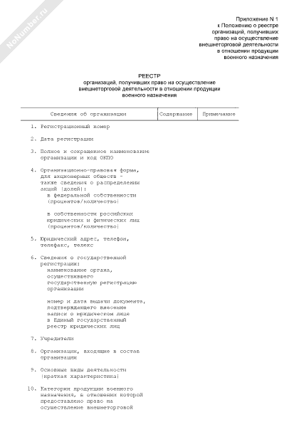 - 284Реестр организаций, получивших право на осуществление внешнеторговой деятельности в отношении продукции военного назначения