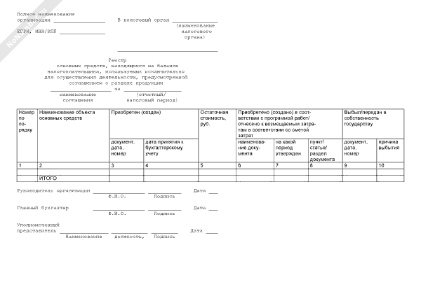 - 287Реестр основных средств, находящихся на балансе налогоплательщика, используемых исключительно для осуществления деятельности, предусмотренной соглашением о разделе продукции
