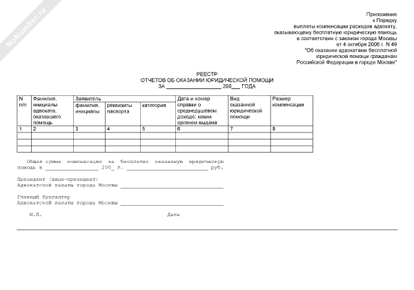 - 291Реестр отчетов об оказании юридической помощи гражданам Российской Федерации в городе Москве