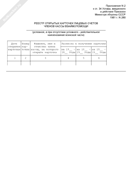- 289Реестр открытых карточек лицевых счетов членов кассы взаимопомощи при воинской части
