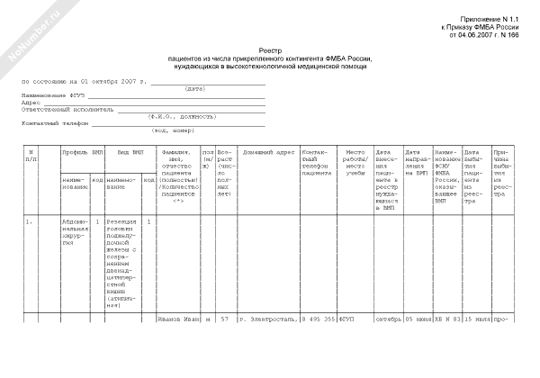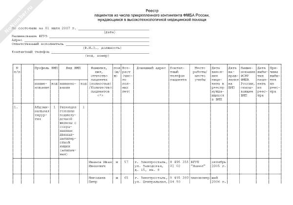 - 297Реестр пациентов из числа прикрепленного контингента Федерального медико-биологического агентства России, нуждающихся в высокотехнологичной медицинской помощи