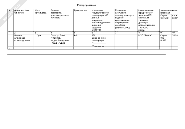 - 385Реестр продавцов на рынке