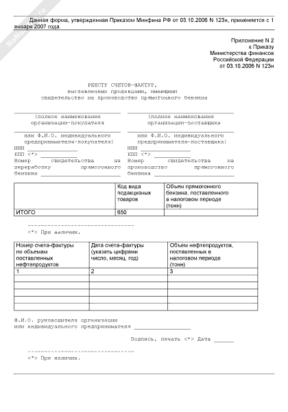 - 502Реестр счетов-фактур, выставленных продавцами, имеющими свидетельство на производство прямогонного бензина