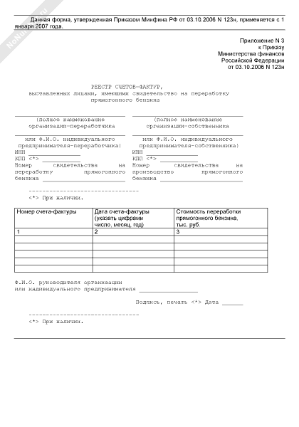 - 503Реестр счетов-фактур, выставленных лицами, имеющими свидетельство на переработку прямогонного бензина