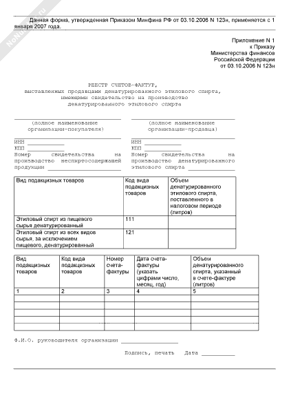 - 501Реестр счетов-фактур, выставленных продавцами денатурированного этилового спирта, имеющими свидетельство на производство денатурированного этилового спирта