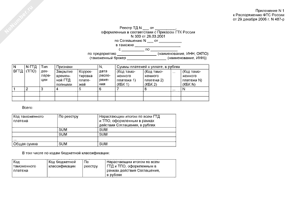 - 508Реестр таможенных деклараций, оформленных в соответствии с Приказом ГТК России от 26.03.2001 № 303