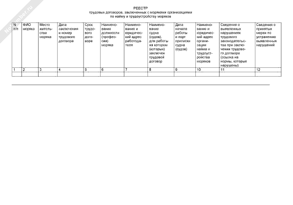 - 516Реестр трудовых договоров, заключенных с моряками организациями по найму и трудоустройству моряков