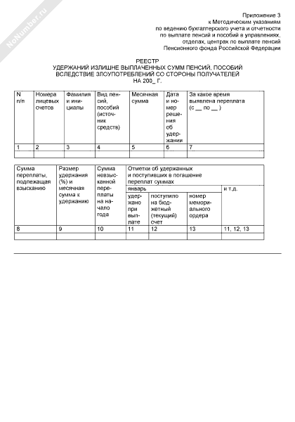 - 519Реестр удержаний излишне выплаченных сумм пенсий, пособий вследствие злоупотреблений со стороны получателей