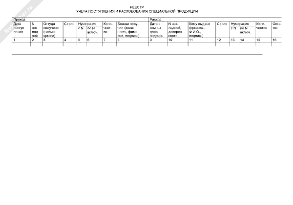 - 535Реестр учета поступления и расходования специальной продукции