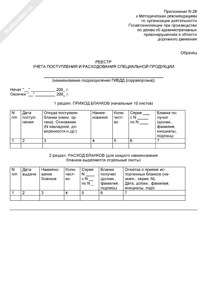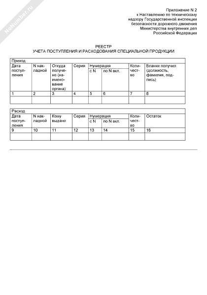 - 534Реестр учета поступления и расходования специальной продукции (бланков) при производстве по делам об административных правонарушениях в области дорожного движения