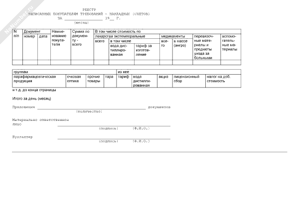 - 89Реестр выписанных покупателям требований-накладных (счетов). Форма № А-2.22