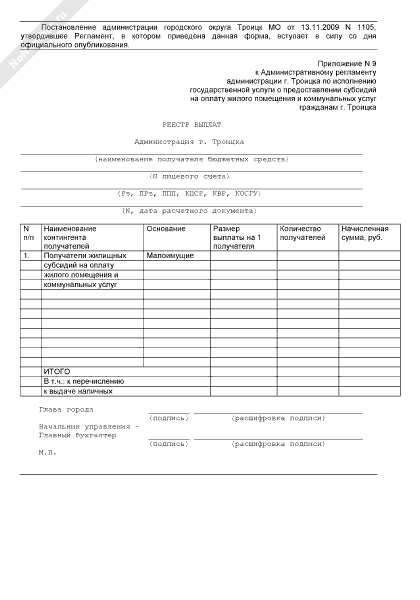 - 92Реестр выплат жилищной субсидии жителю г. Троицка Московской области на оплату жилого помещения и коммунальных услуг