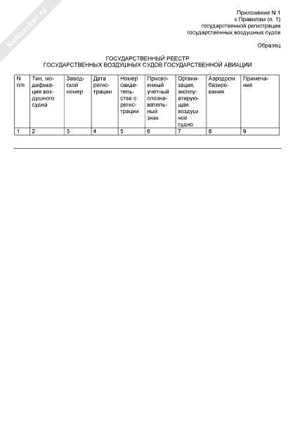 Государственный реестр государственных воздушных судов государственной авиации (рекомендуемый образец заполнения)