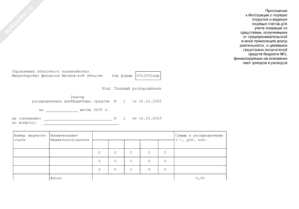 Сводный реестр поступлений и выбытий средств бюджета. Форма № 0511009